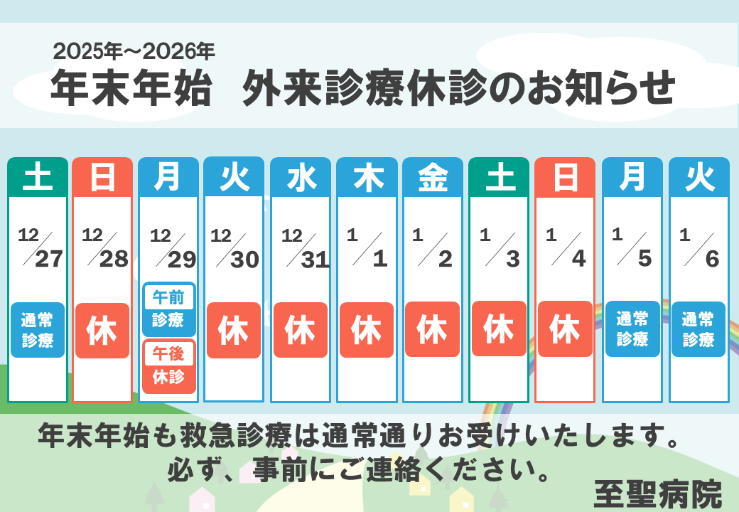 【2025-2026】年末年始の外来診療休診のお知らせ